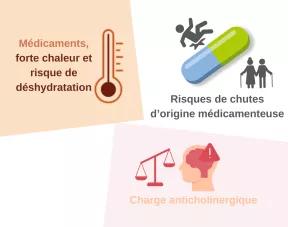 Les périodes de canicule sont de plus en plus fréquentes et longues, et entrainent des risques pour la santé, tels que le syndrome d’épuisement-déshydratation et le coup de chaleur. Certaines personnes sont particulièrement à risque au cours de fortes chaleurs, et des médicaments majorent ce risque. Réévaluer les ordonnances, adapter les traitements voire déprescrire peuvent être une solution.